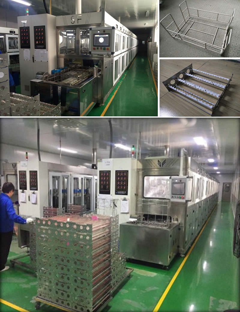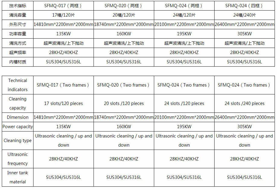 ● 藥水槽部分超聲波頻率:28KHZ,清水槽部分超聲波頻率:40KHZ ● 槽體及水箱采用圓角設(shè)計,減少藏污納垢。 ● 槽體和水箱全部保溫棉敷貼。 ● 觸摸屏采用懸臂式,可方便移動和操作 ● 設(shè)備機架外框采用不銹鋼 ● 噴淋槽采用移動式掃描噴淋,清洗無死角 ● 烘干輸送采用整體提升橫移,減少摩擦 ☆ The ultrasonic frequency of the medicine sink part: 28KHZ, the ultrasonic frequency of the clear sink part: 40KHZ ☆ Tanks and tanks are rounded to reduce filth. ☆ The tank body and water tank are all covered with cotton insulation. ☆ Touch screen is cantilevered for easy movement and operation ☆ Equipment frame is made of stainless steel ☆ Spraying trough adopts mobile scanning spray, cleaning has no dead ends ☆ Dry conveyor adopts overall lifting traverse to reduce friction